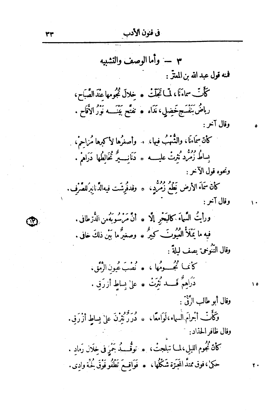 وكأنّ أجرام السماء، لوامعا، ... درر نثرن على بساط أزرق.
