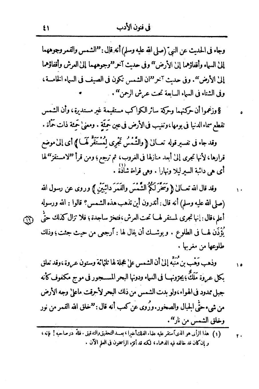 «ان الشمس تكون فى الصيف فى السماء الخامسة، وفى الشتاء فى السماء السابعة تحت عرش الرحمن»