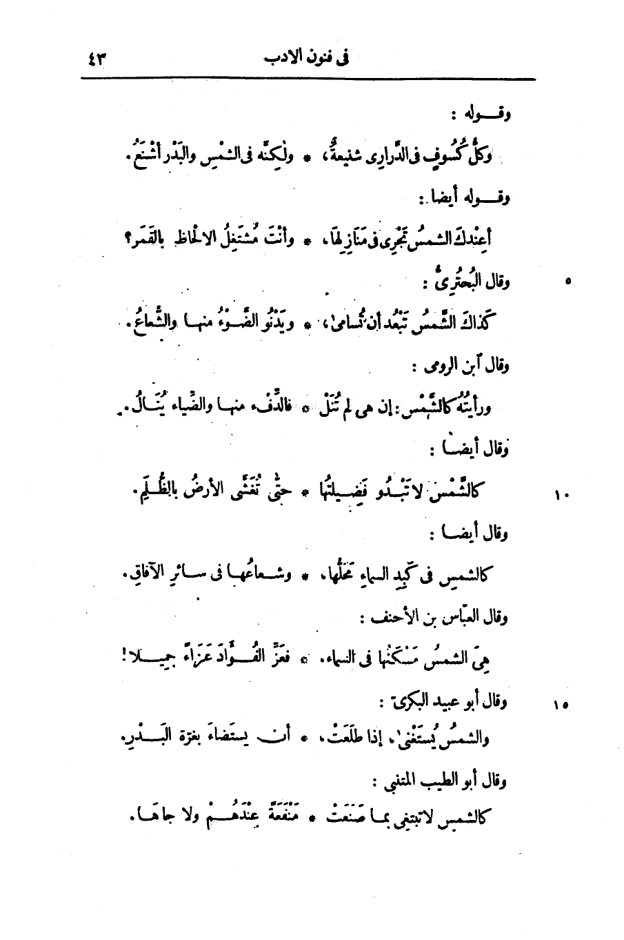 أعندك الشمس تجرى فى منازلها، ... وأنت مشتغل الالحاظ بالقمر؟