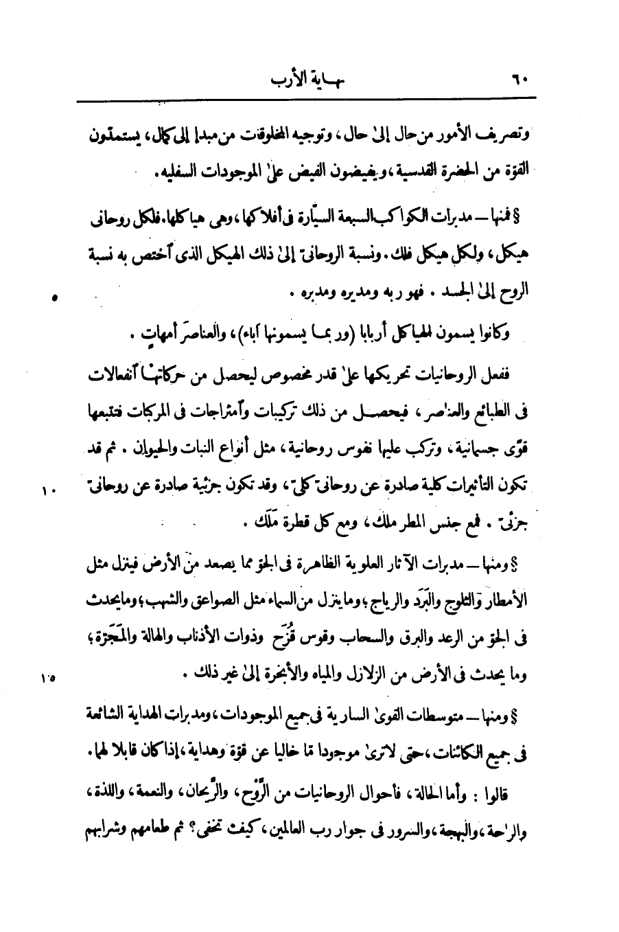 ومنها- متوسطات القوى السارية فى جميع الموجودات، ومدبرات الهداية الشائعة فى جميع الكائنات، حتى لا ترى موجودا ما خاليا عن قوّة وهداية، إذا كان قابلا لهما.