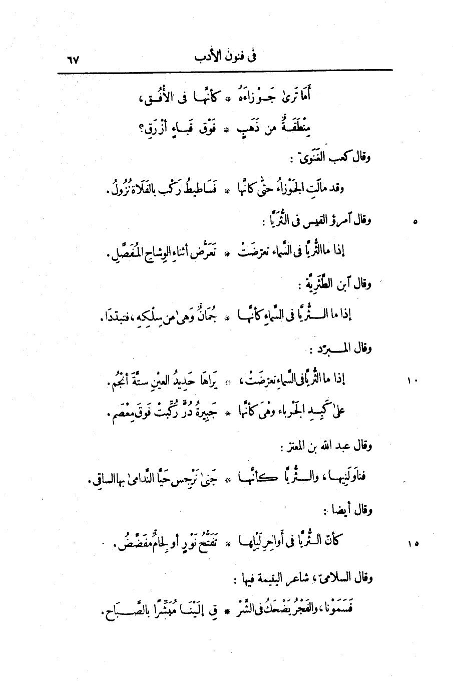 إذا ما الثّريّا فى السّماء تعترضت، ... يراها حديد العين ستّة أنجم.