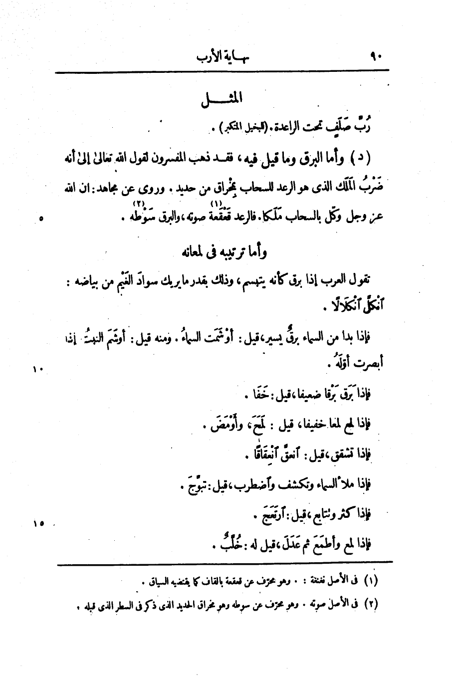 (د) وأما البرق وما قيل فيه، فقد ذهب المفسرون لقول الله تعالى إلى أنه ضرب الملك الذى هو الرعد للسحاب بمخراق من حديد. وروى عن مجاهد: ان الله عز وجل وكّل بالسحاب ملكا. فالرعد قعقعة [1] صوته، والبرق سوطه [2] .