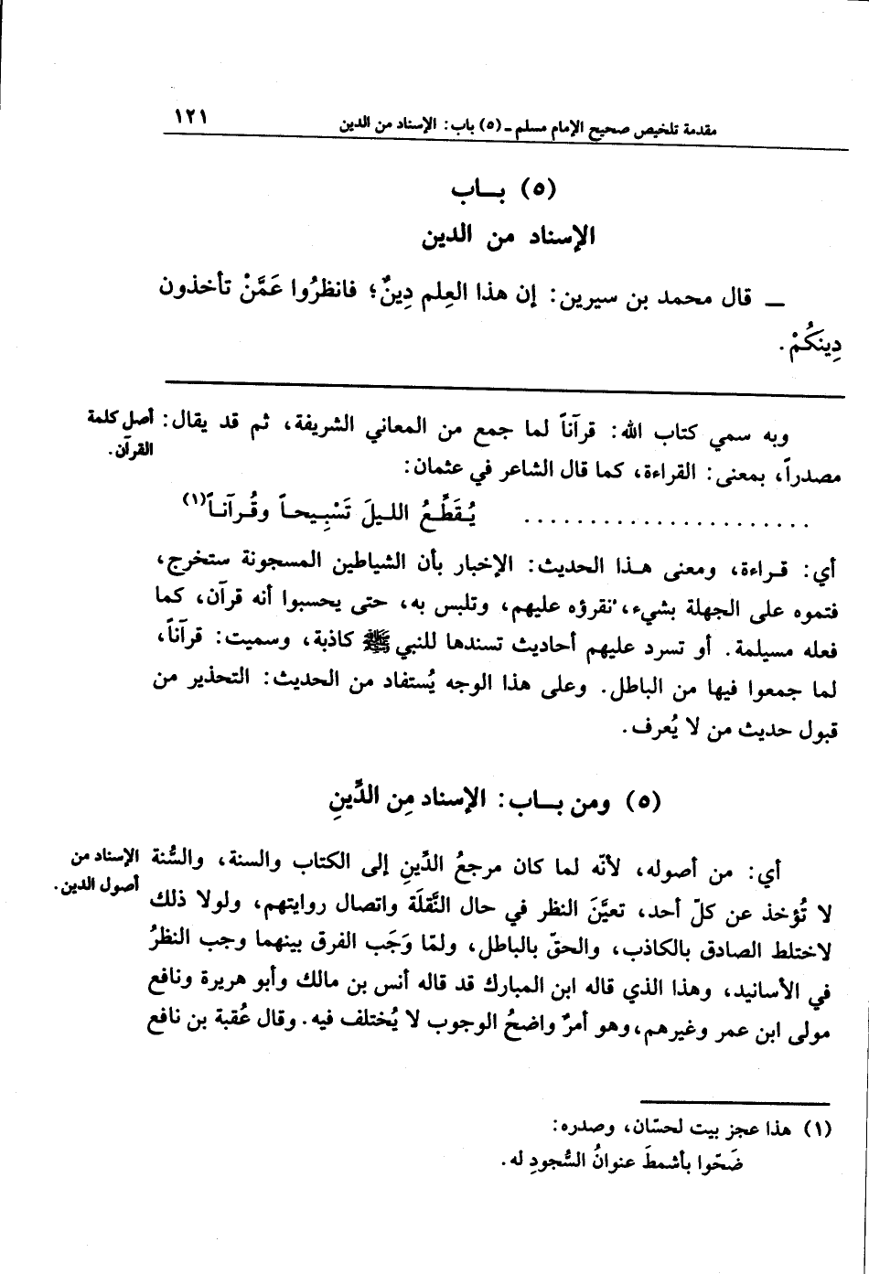 (5) ومِن بَاب الإِسنَادِ مِنَ الدِّينِ