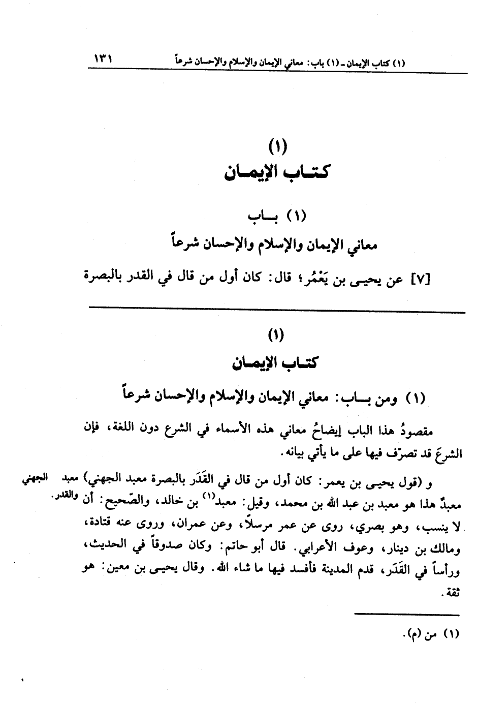 (1) ومِن بَابِ مَعَانِي الإِيمَانِ وَالإِسلاَمِ وَالإِحسَانِ شَرعًا