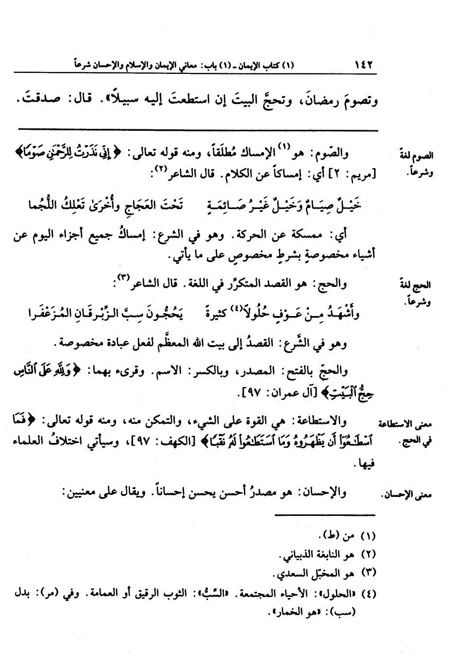 والإحسان: هو مصدر أحسَنَ يُحسِنُ إحسانًا، ويقال على معنيَينِ: