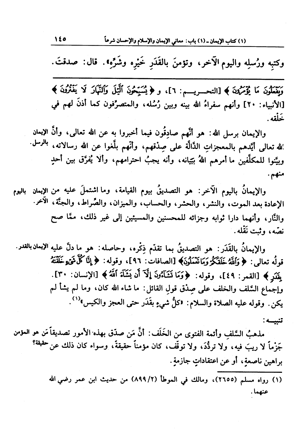 مذهبُ السلفِ وأئمَّةِ الفتوى من الخَلَف: أنَّ من صدَّق بهذه الأمور تصديقًا جَزمًا لا ريبَ فيه ولا تردُّدَ ولا توقُّف، كان مؤمناً حقيقةً، وسواءٌ كان ذلك عن براهينَ ناصعة، أو عن اعتقاداتٍ جازمة.