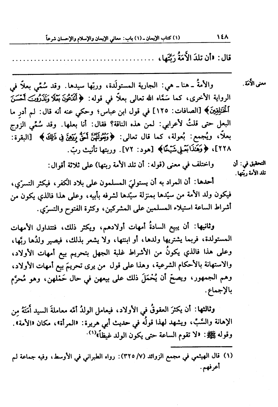 واختُلِف في معنى (قوله: أن تلد الأمةُ رَبَّتهَا) على ثلاثة أقوال: