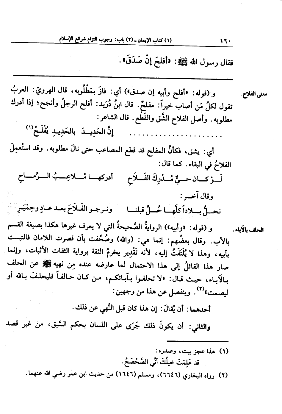 و(قوله: أَفلَحَ وأَبِيهِ إن صَدَقَ) أي: فاز بمطلوبه؛ قال الهَرَوِيُّ: العرب تقول لكلِّ من أصاب خيرًا: مُفلِح، قال ابنُ دُرَيدٍ: أَفلَحَ الرجلُ وأَنجَحَ: إذا أدرَكَ مطلوبَهُ. وأصلُ الفلاح الشَّقُّ والقطع؛ قال الشاعر: