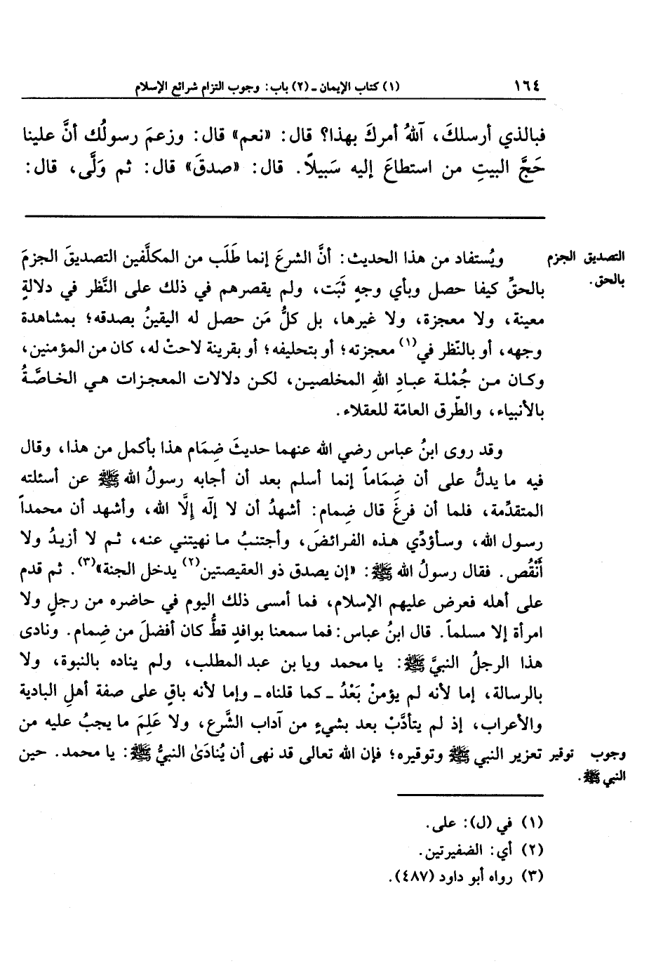 فبالذي أرسلك، آلله أمرك بهذا؟ قال: نعم. قال: وزعم رسولك أن علينا حج البيت من استطاع إليه سبيلا. قال: صدق، قال: ثم ولى، قال: