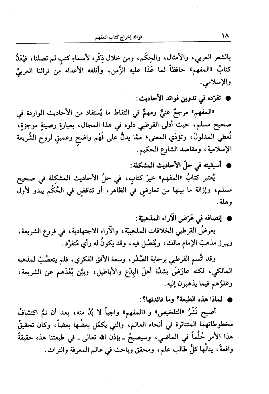أصبح نَشْرُ "التلخيص" و "المفهم" واجبًا لا بُدَّ منه، بعد أن تمَّ اكتشافُ مخطوطاتهما المتناثرة في أنحاء العالم، والتي يكمِّل بعضُها بعضًا، وكان تحقيقُ هذا الأمر حُلُمًا في الماضي، وسيصبحُ - بإذن الله تعالى - في طبعتنا هذه حقيقةً واقعةً، ينالُها كل طالب علم، ومحقق وباحث في عالم المعرفة والتراث.