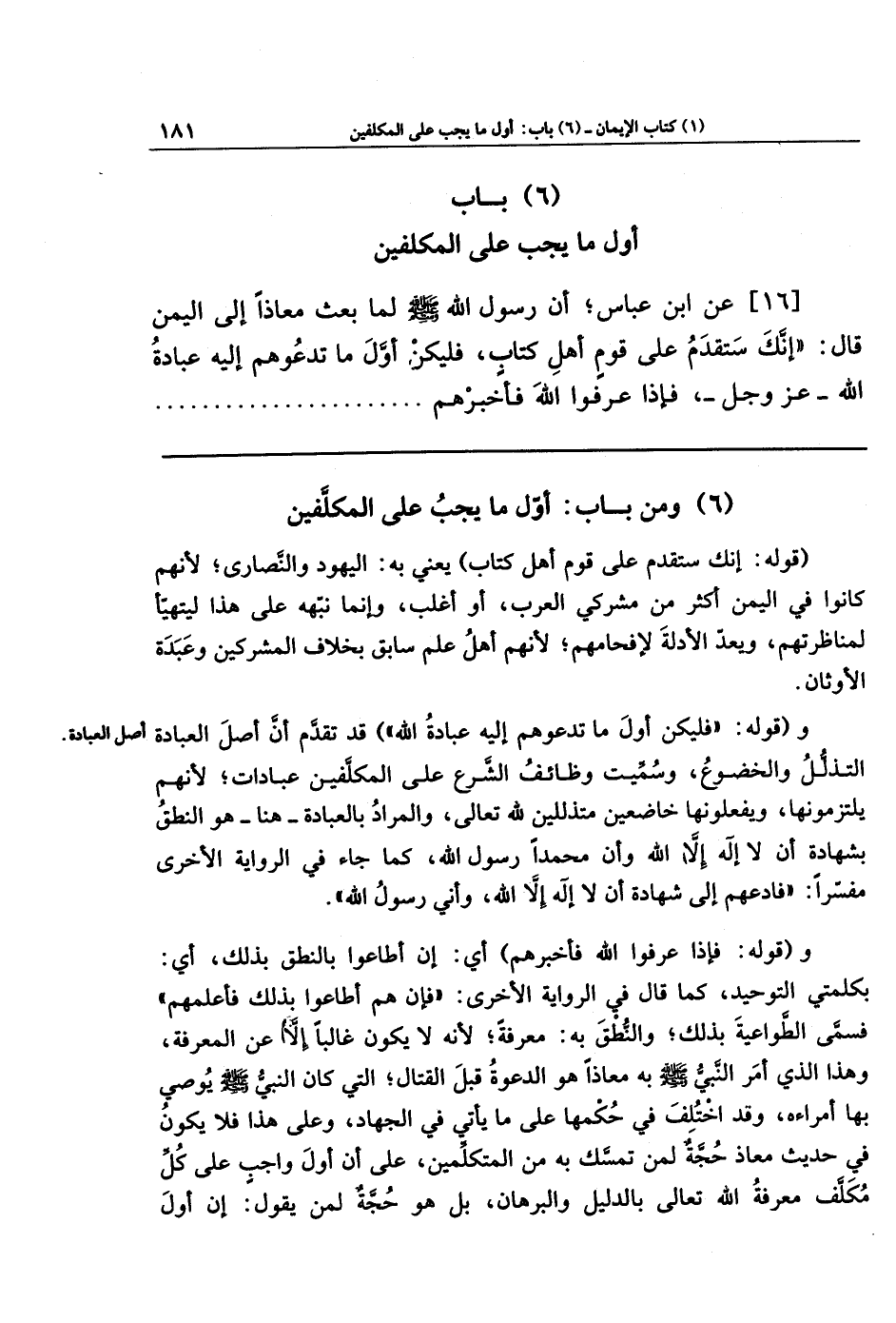 (6) بَابُ أَوَّلِ مَا يَجِبُ عَلَى المُكَلَّفِينَ