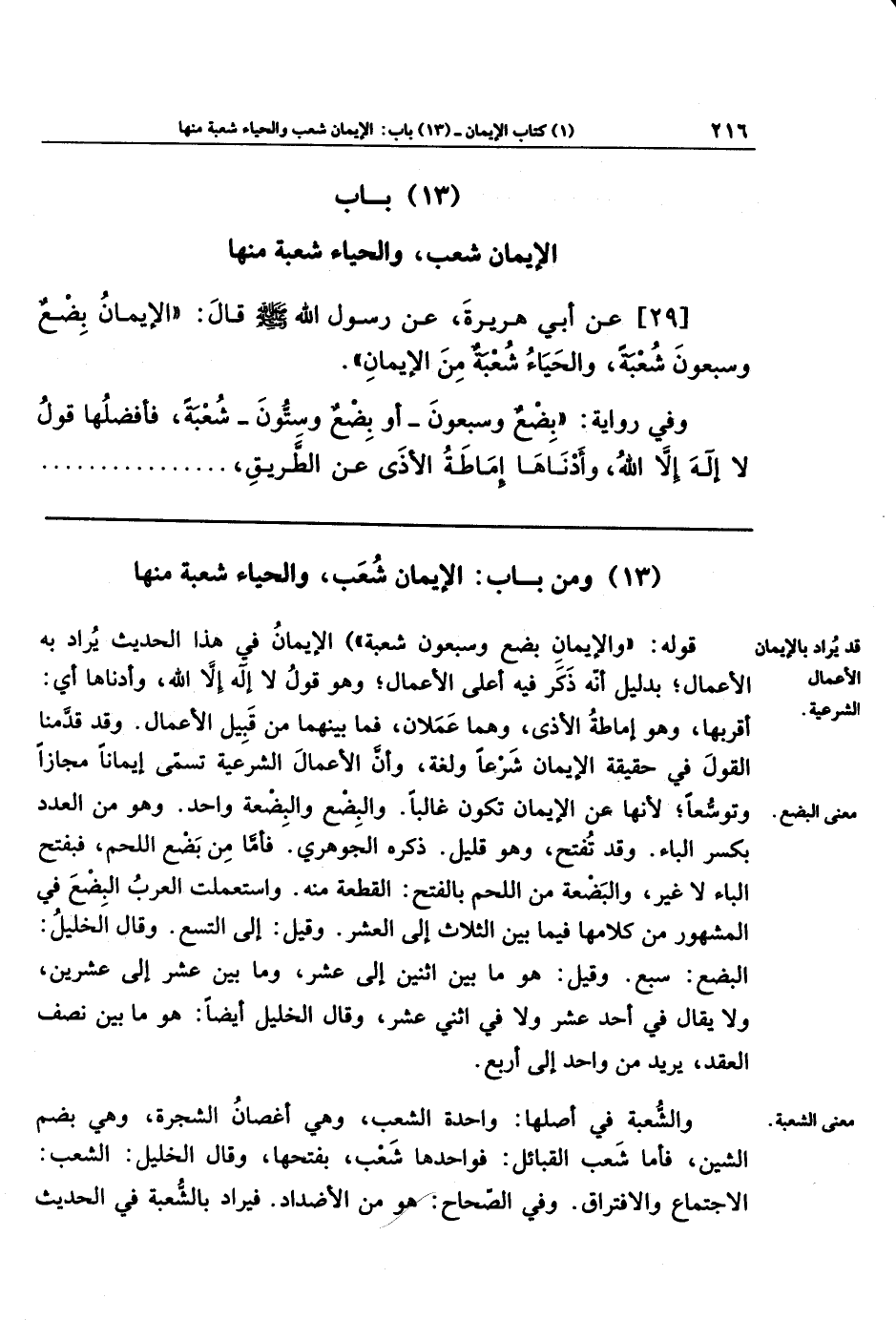 (13) وَمِن بَابِ الإِيمَانُ شُعَبٌ، وَالحَيَاءُ شُعبَةٌ مِنهَا