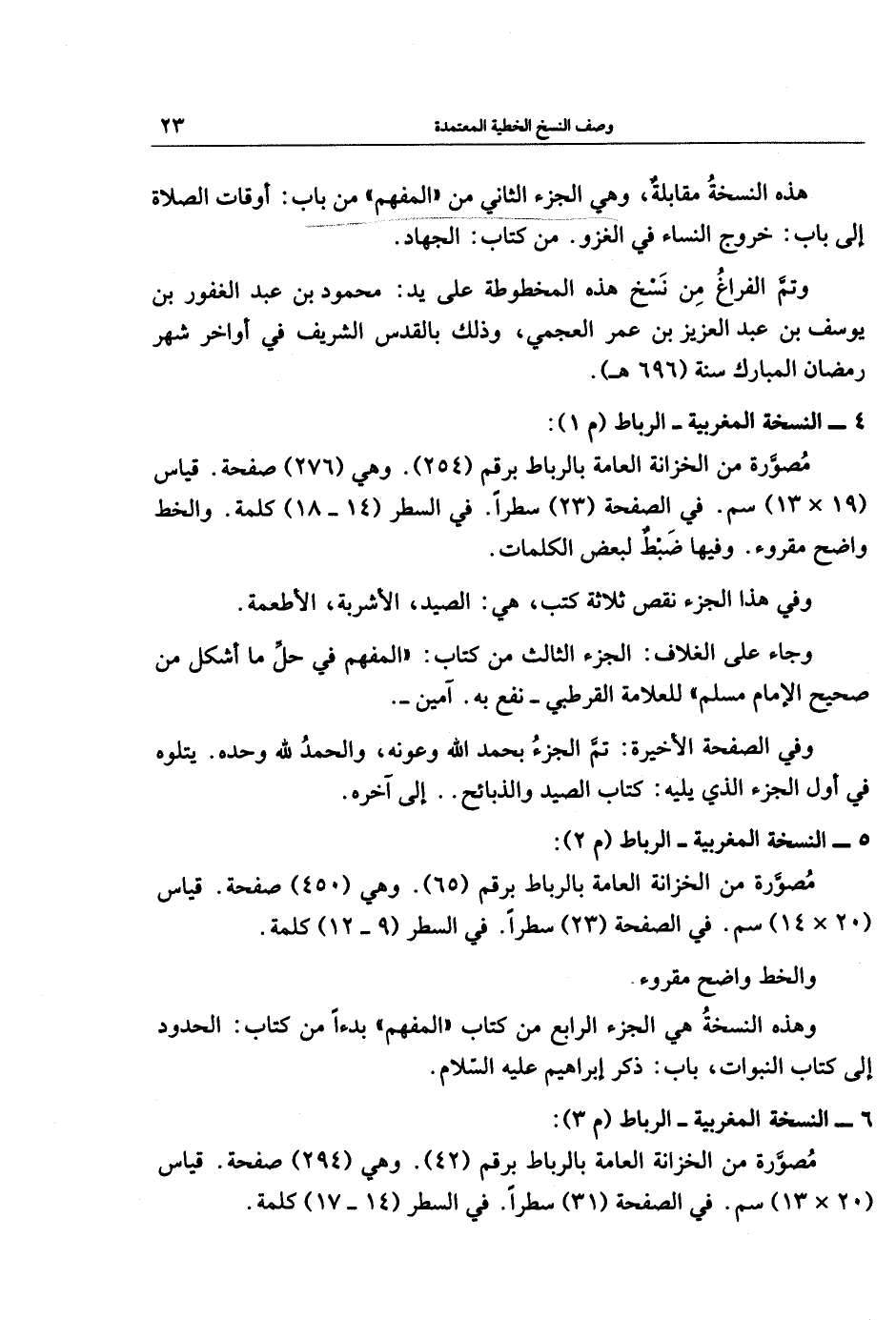 وهذه النسخةُ هي الجزء الرابع من كتابا "المفهم" بدءًا من كتاب: الحدود إلى كتاب النبوات، باب: ذكر إبراهيم عليه السّلام.