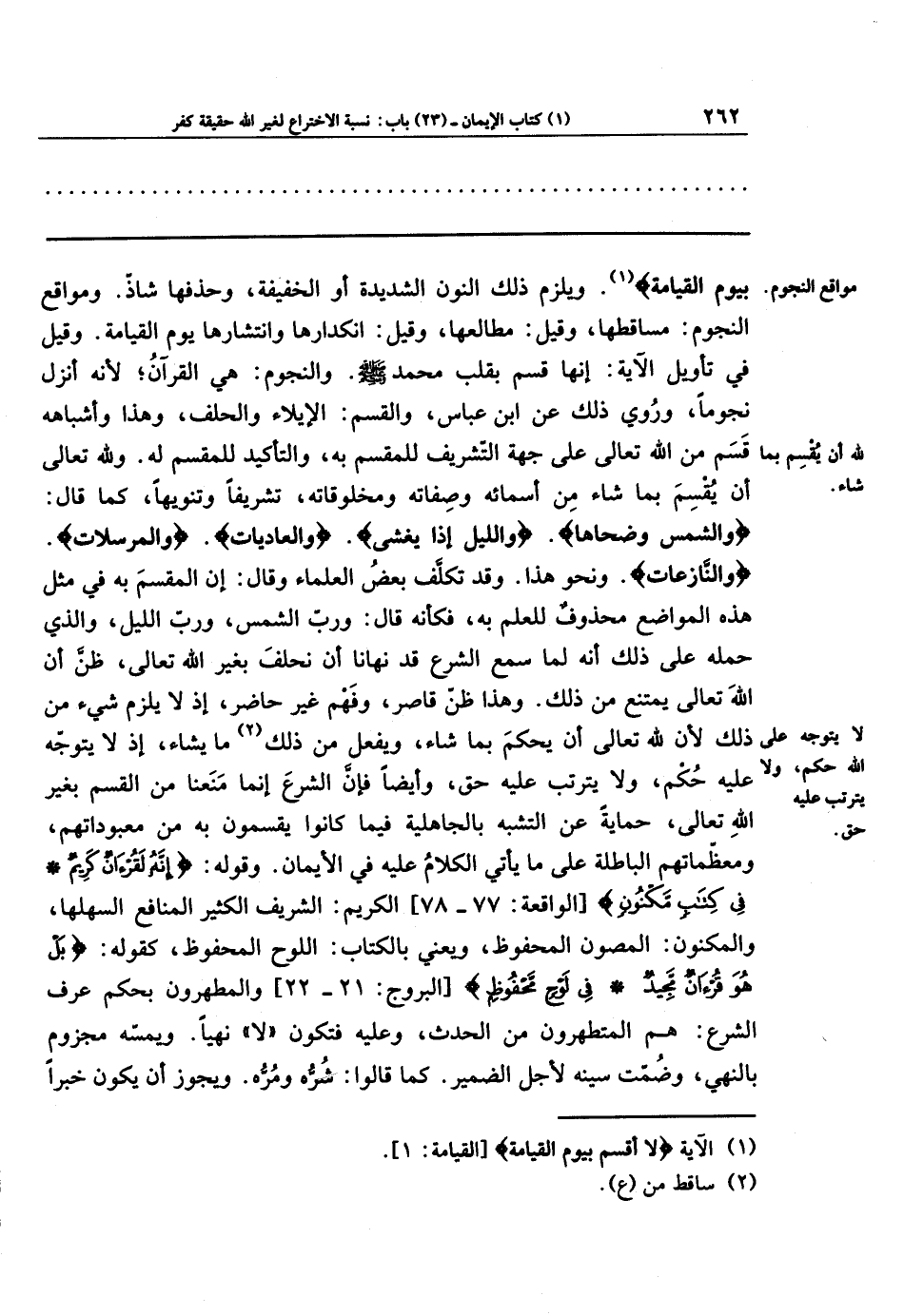 (¬1) الآية {لا أقسم بيوم القيامة} [القيامة: 1].