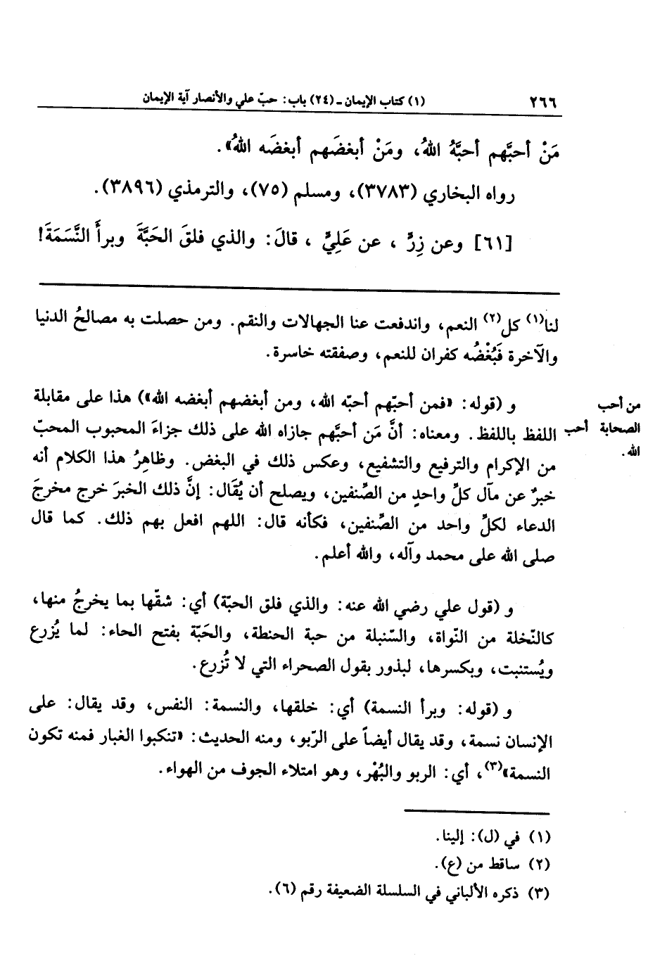 [61] وَعَن زِرٍّ، عَن عَليٍّ قَالَ: وَالَّذِي فَلَقَ الحَبَّةَ، وَبَرَأَ النَّسَمَةَ!