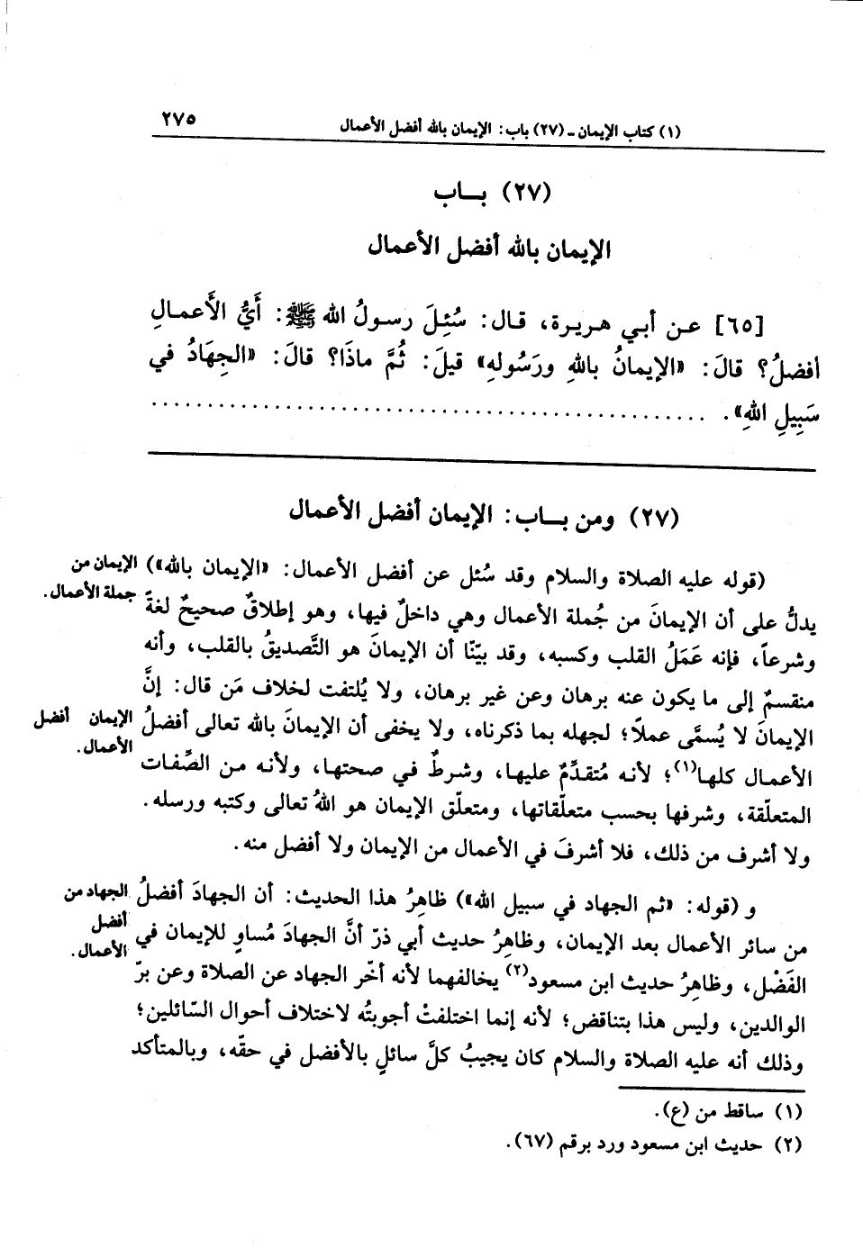 (27) وَمِن بَابٍ الإِيمَانُ أَفضَلُ الأَعمَالِ