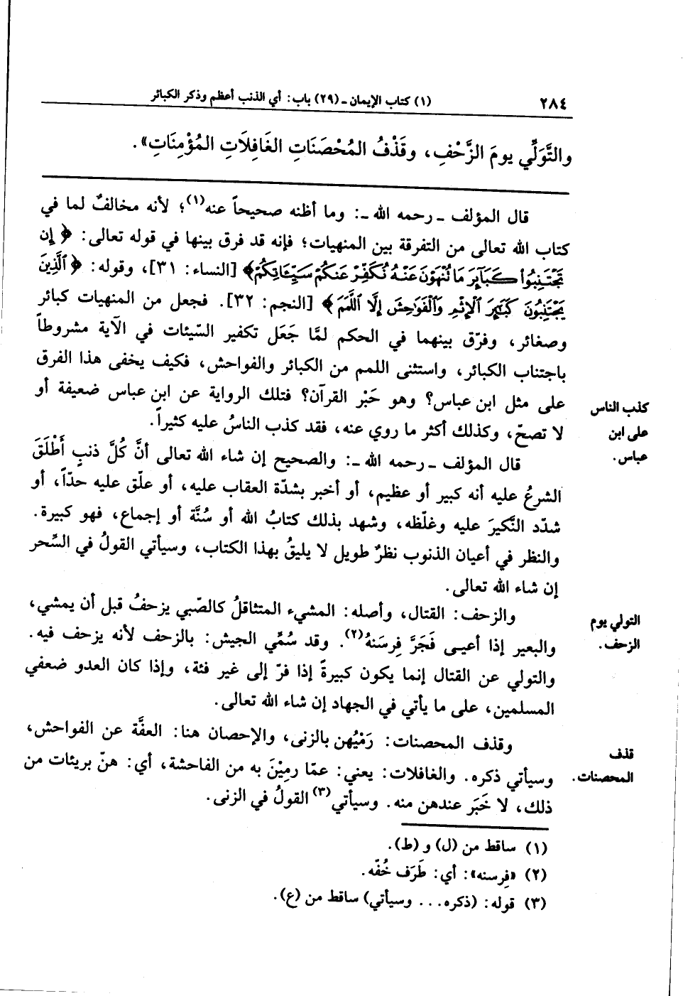 وَالتَّوَلِّي يَومَ الزَّحفِ، وَقَذفُ المُحصَنَاتِ الغَافِلاَتِ المُؤمِنَاتِ.