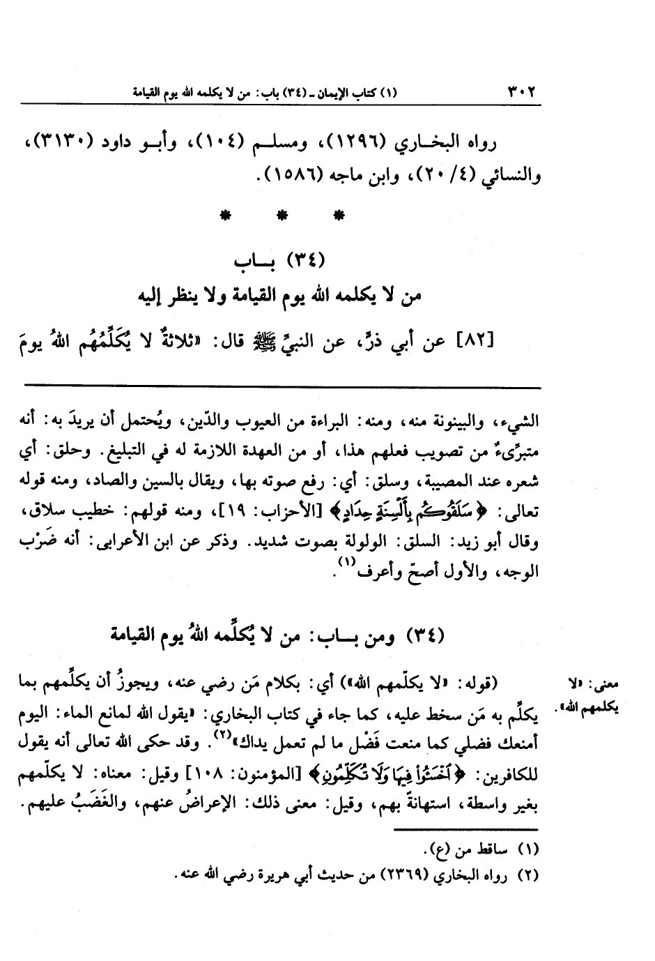 (34) وَمِن بَابِ: مَن لاَ يُكَلِّمُهُ اللهُ يَومَ القِيَامَةِ