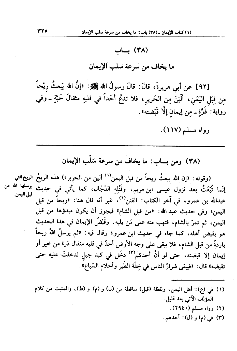 (38) وَمِن بَابِ مَا يُخَافُ مِن سُرعَةِ سَلبِ الإِيمَانِ