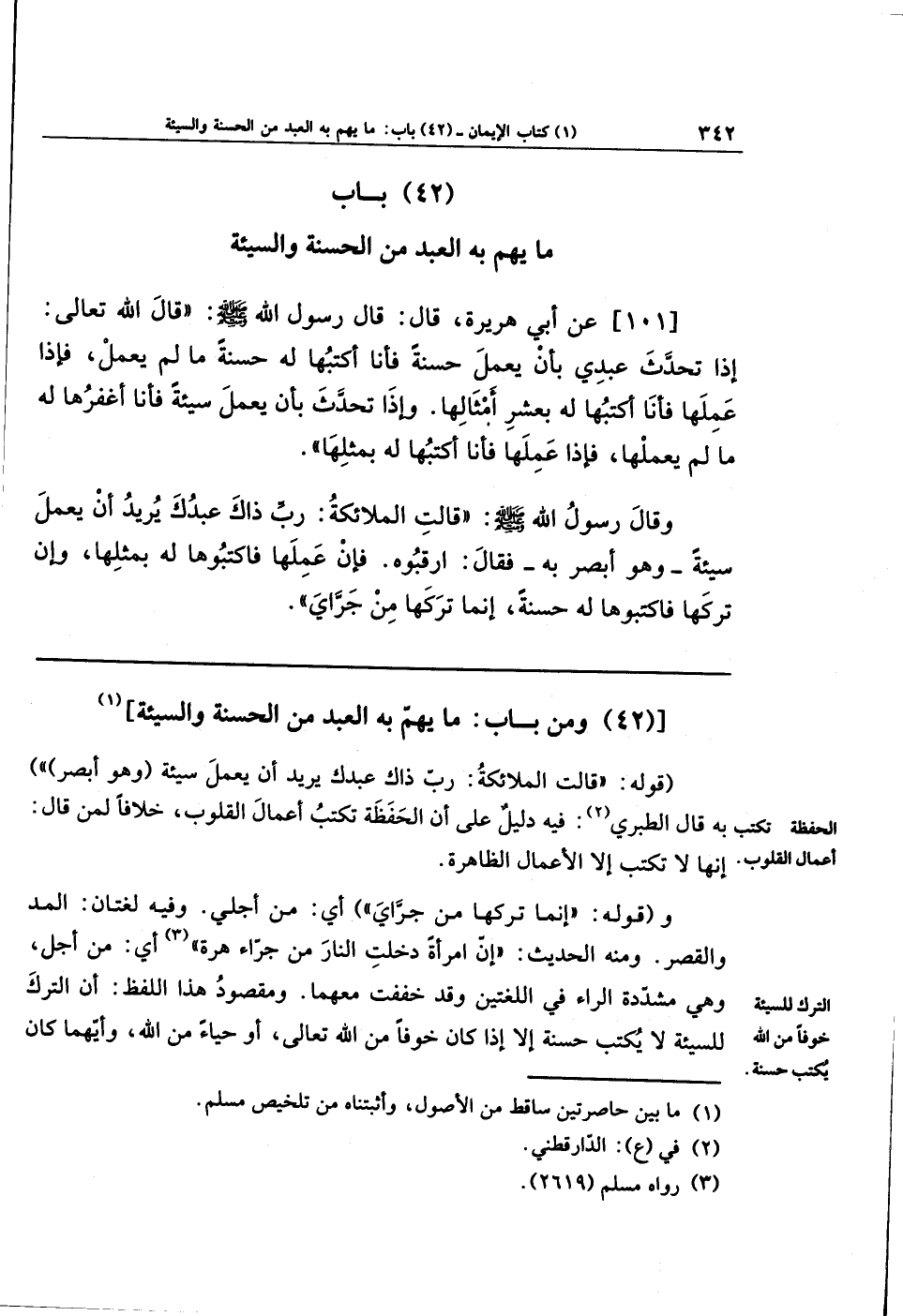 (42) ومن باب ما يهم به العبد من الحسنة والسيئة (¬1)