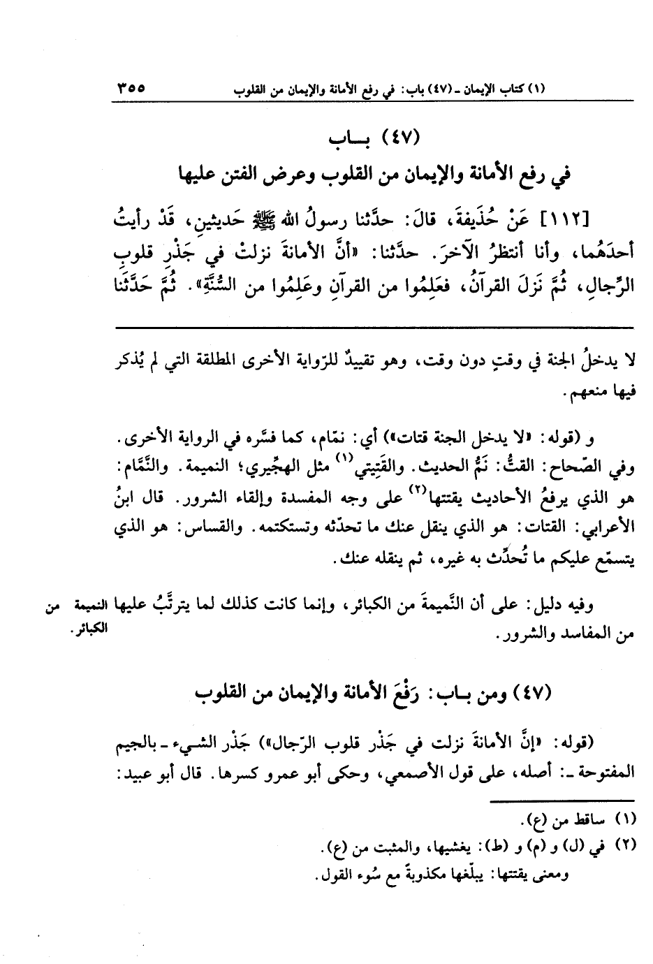 (47) وَمِن بَابِ رَفعِ الأَمَانَةِ وَالإِيمَانِ مِنَ القُلُوبِ