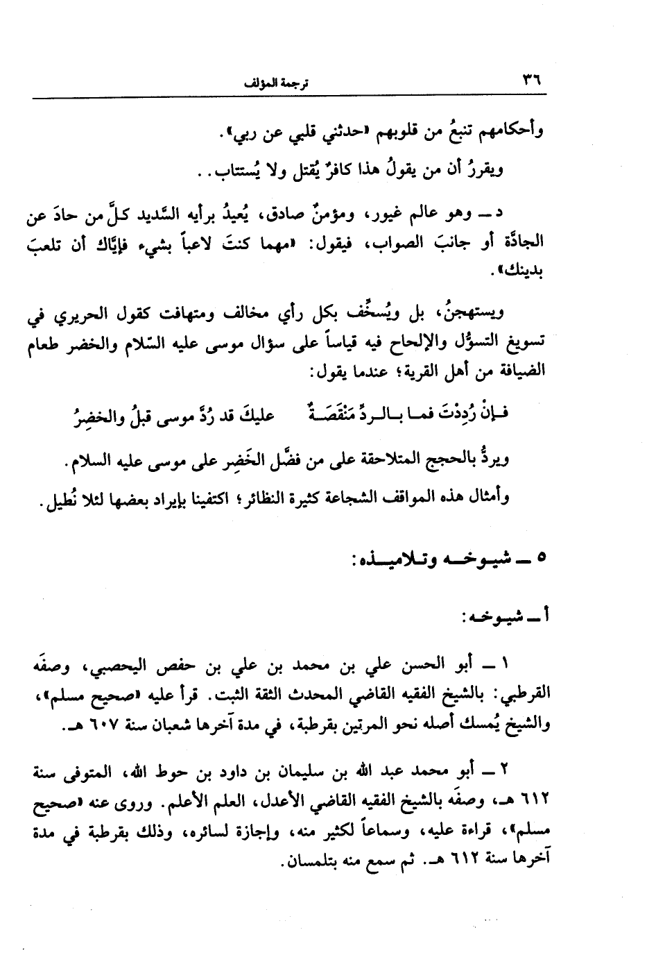 1 - أبو الحسن علي بن محمد بن علي بن حفص اليحصبي، وصفَه القرطبي: بالشيخ الفقيه القاضي المحدث الثقة الثبت. قرأ عليه "صحيح مسلم"، والشيخ يُمسك أصله نحو المرتين بقرطبة، في مدة آخرها شعبان سنة 607 هـ.