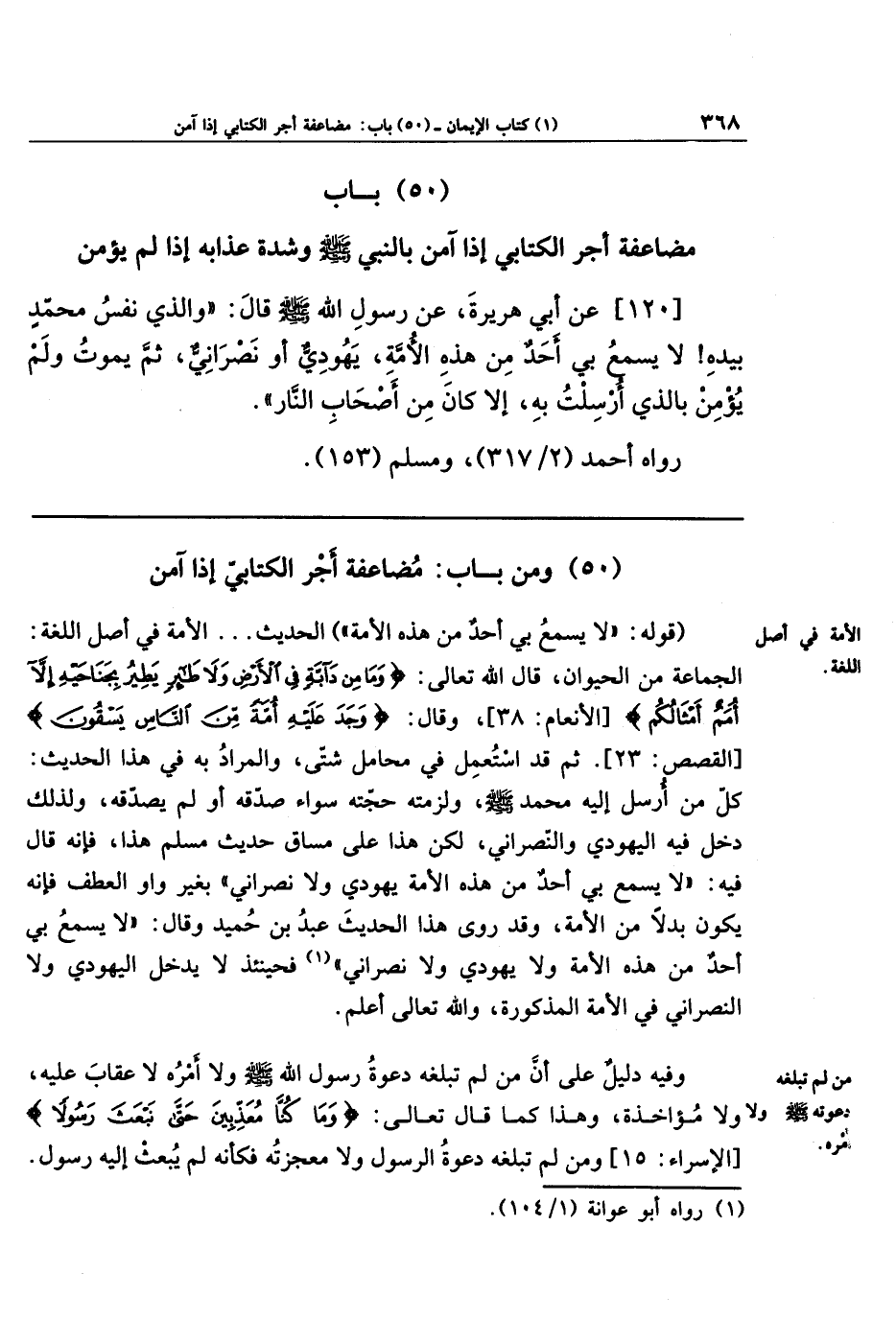 (50) ومن باب مضاعفة أجر الكتابي إذا آمن