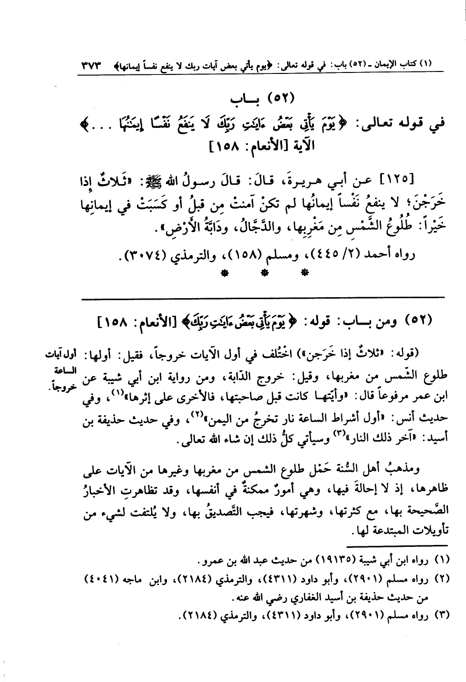 (52) ومن باب قوله: يَومَ يَأتِي بَعضُ آيَاتِ رَبِّكَ