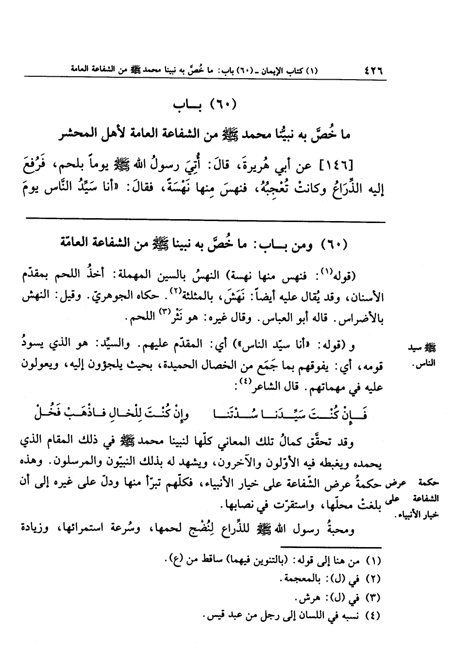 (60) ومن باب ما خصّ به نبينا - صلى الله عليه وسلم - من الشفاعة العامة