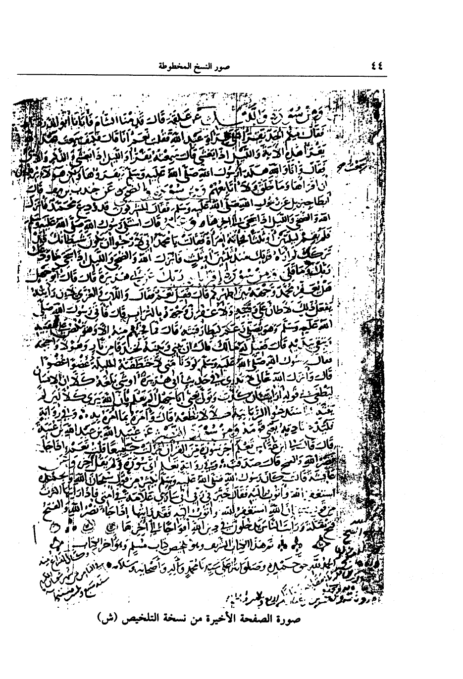 صورة الصفحة الأخيرة من نسخة التلخيص (ش)