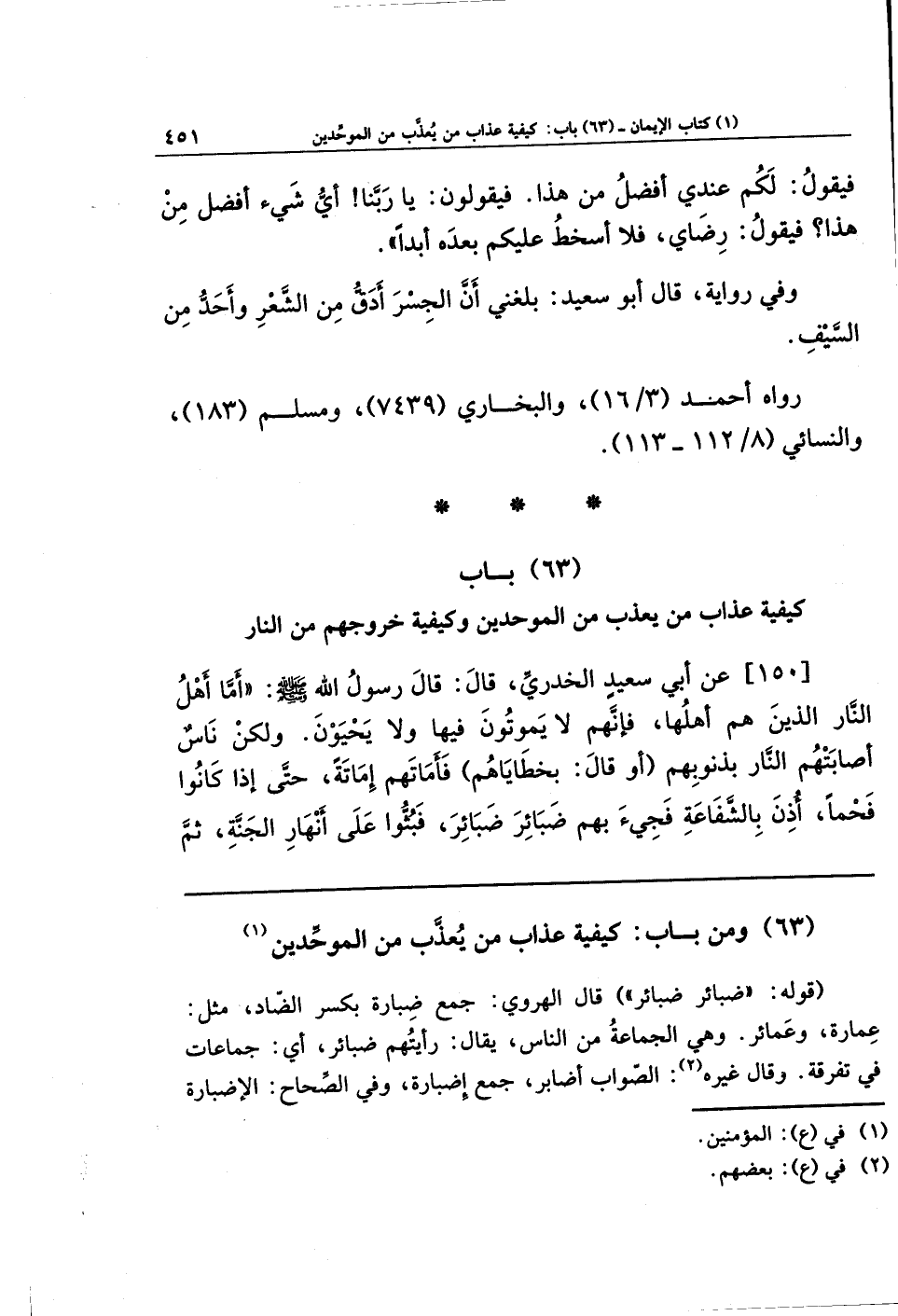 (63) باب كيفية عذاب من يعذب من الموحدين وكيفية خروجهم من النار