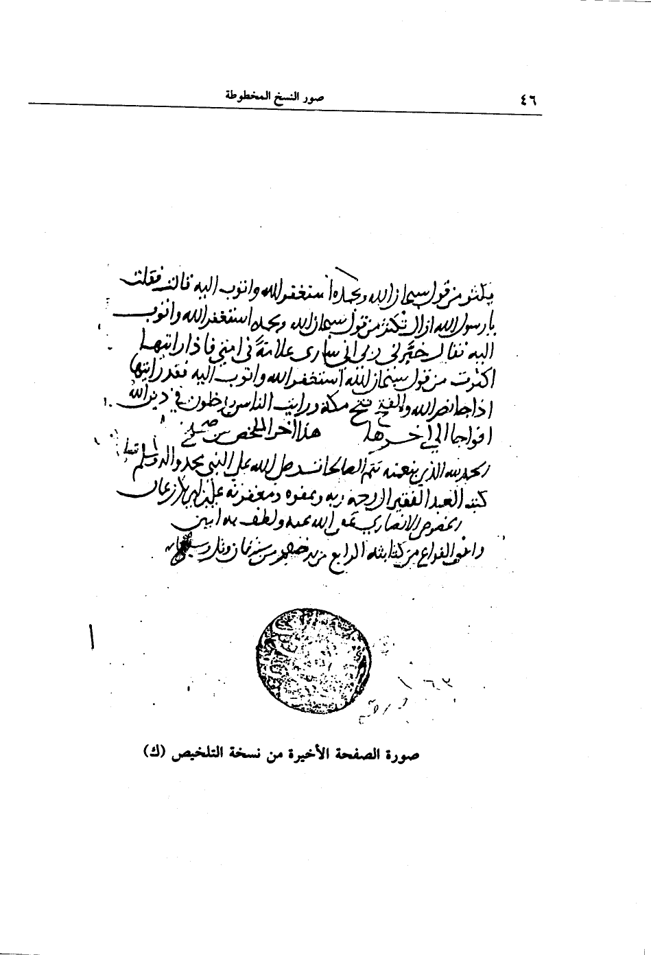 صورة الصفحة الأخيرة من نسخة التلخيص (ك)