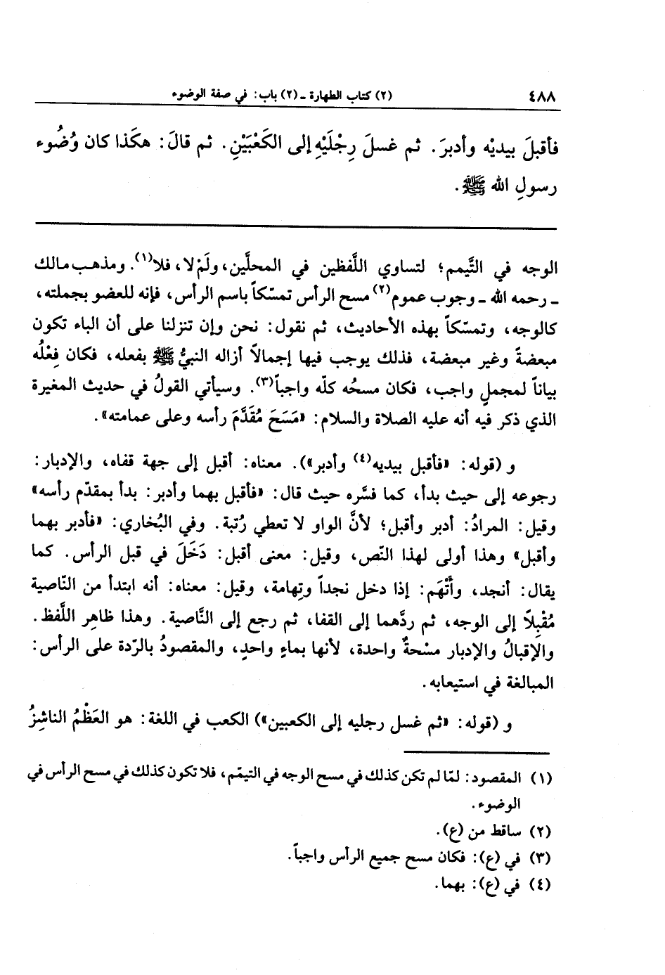 فَأَقبَلَ بِيَدَيهِ وَأَدبَرَ، ثُمَّ غَسَلَ رِجلَيهِ إِلَى الكَعبَينِ، ثُمَّ قَالَ: هَكَذَا كَانَ وُضُوءُ رَسُولِ اللهِ - صلى الله عليه وسلم -.