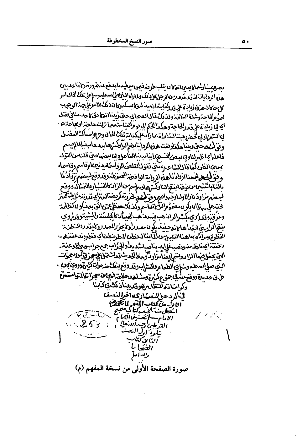 صورة الصفحة الأولى من نسخة المفهم (م)