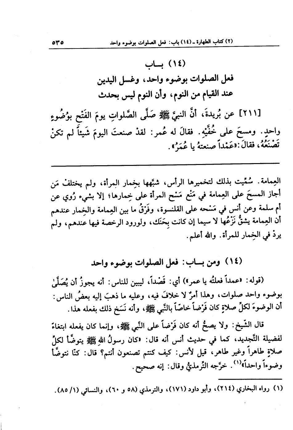 (14) ومن باب: فعل الصلوات بوضوء واحد