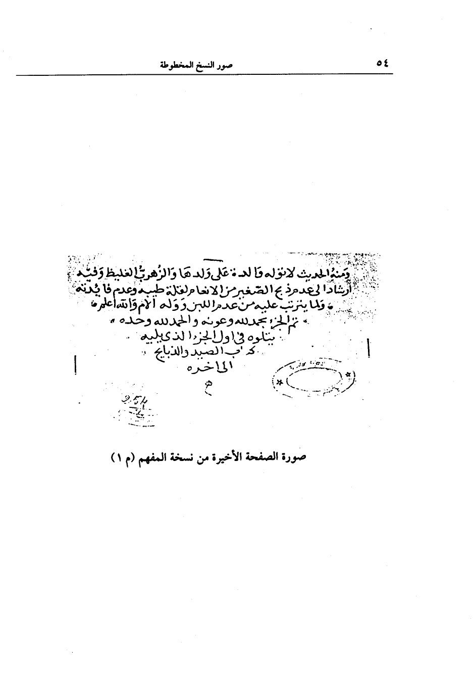 صورة الصفحة الأخيرة من نسخة المفهم (م 1)