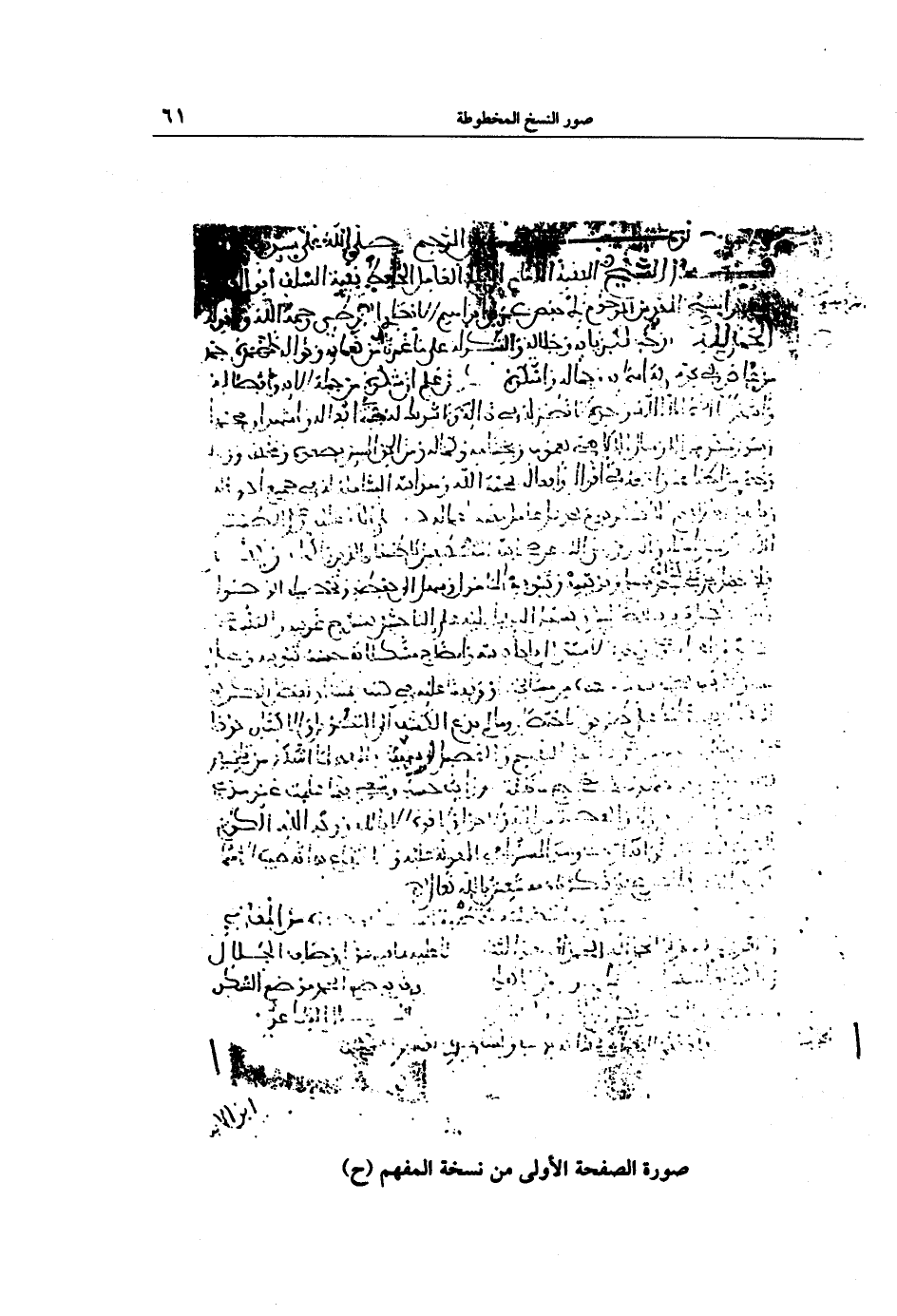 صورة الصفحة الأولى من نسخة المفهم (ح)
