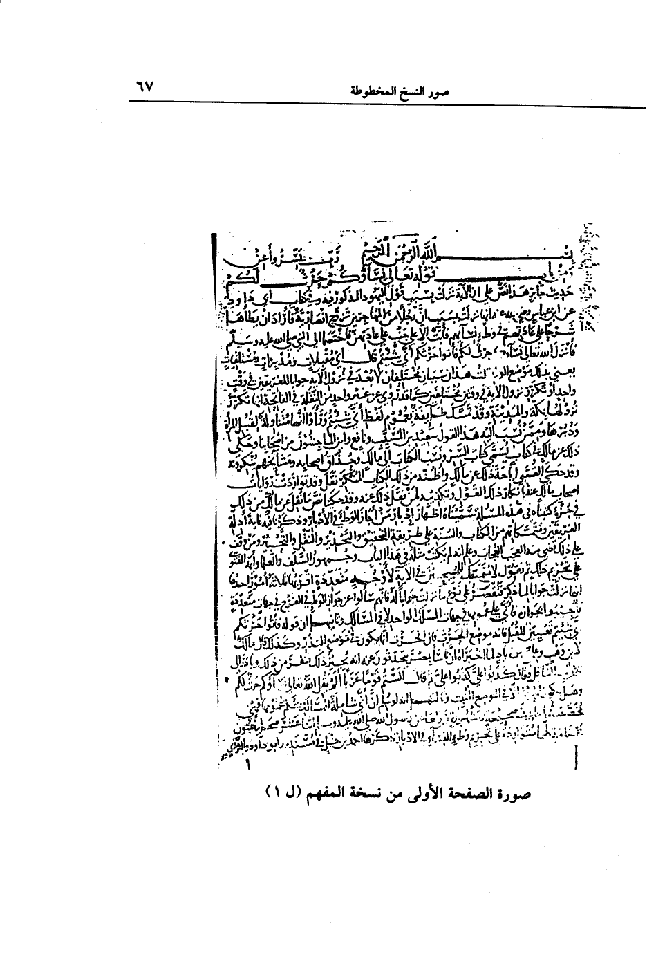صورة الصفحة الأولى من نسخة المفهم (ل 1)