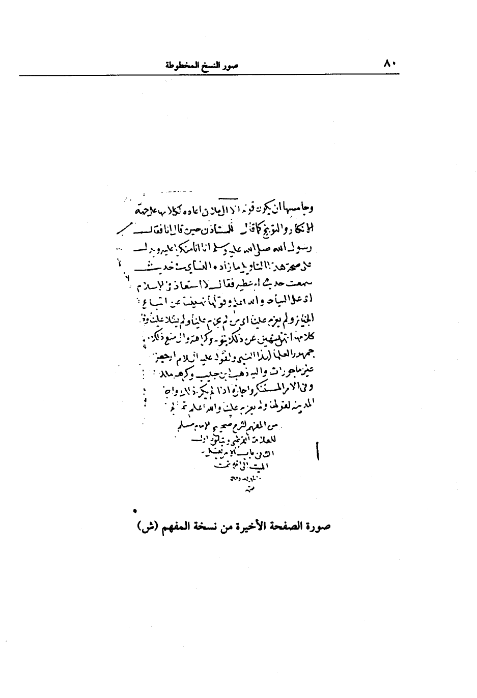صورة الصفحة الأخيرة من نسخة المفهم (ش)