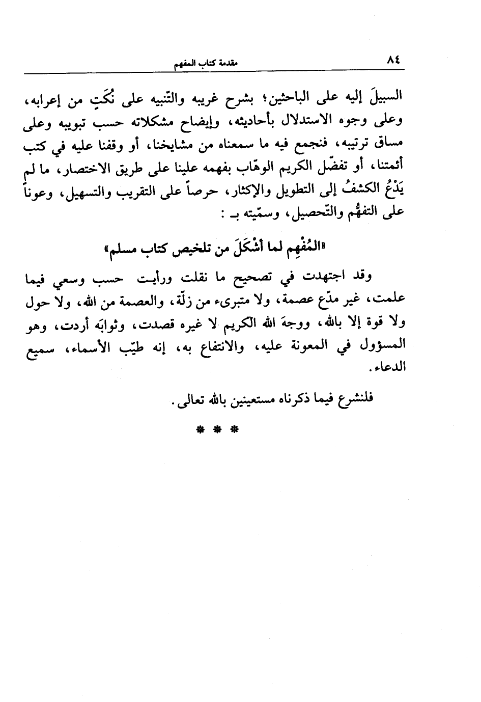 المُفهِم لِمَا أَشكَلَ مِن تلخيصِ كتابِ مُسلِم.