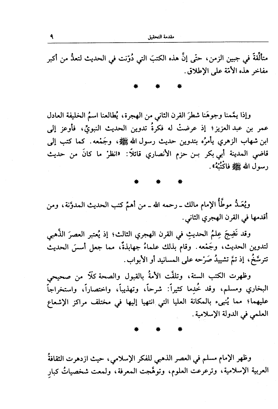 متألِّقةً في جبين الزمن، حتى إنَّ هذه الكتبَ التي دُوّنت في الحديث لتعدُّ من أكبر مفاخر هذه الأمّة على الإطلاق.