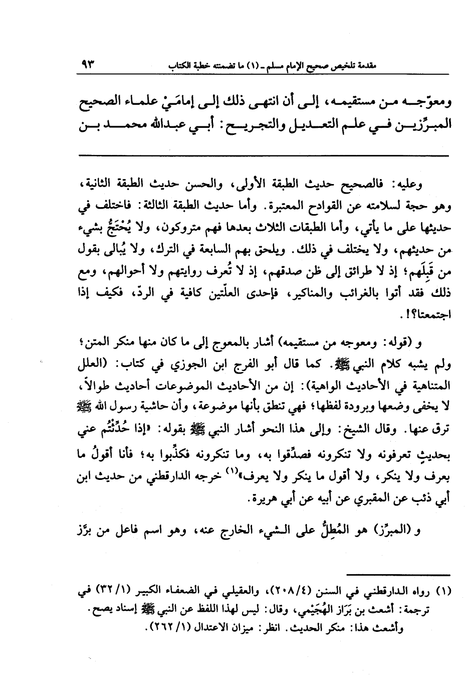 ومُعوَجَّهُ مِن مُستَقيمِه، إلى أن انتَهى ذلك إلى إمَامَي عُلَماءِ الصَّحيح، المُبَرِّزَينِ في عِلمِ التَّعديلِ والتَّجريح: أبي عبد الله محمَّد بن
