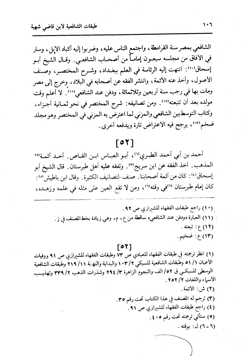 52 - أَحْمد بن أبي أَحْمد الطَّبَرِيّ أَبُو الْعَبَّاس ابْن الْقَاص أحد أَئِمَّة الْمَذْهَب أَخذ الْفِقْه عَن ابْن سُرَيج وتفقه عَلَيْهِ أهل طبرستان قَالَ الشَّيْخ أَبُو إِسْحَاق كَانَ من أَئِمَّة أَصْحَابنَا صنف التصانيف الْكَثِيرَة وَقَالَ ابْن باطيش كَانَ إِمَام طبرستان فِي وقته وَمن لَا تقع الْعين على مثله فِي علمه وزهده
