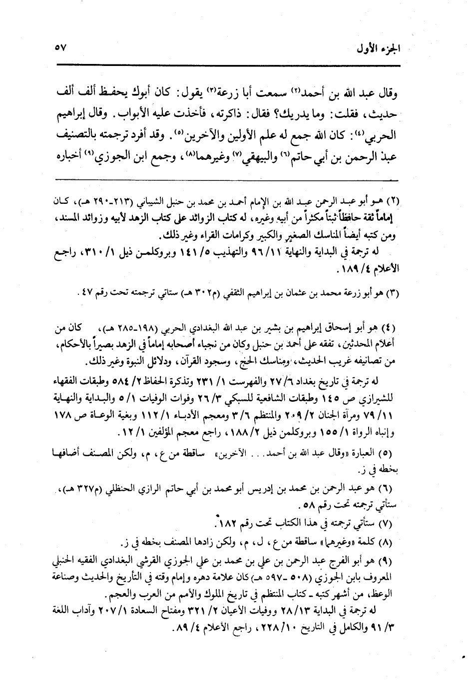 وَقَالَ عبد الله بن احْمَد سَمِعت أَبَا زرْعَة يَقُول كَانَ أَبوك يحفظ ألف ألف حَدِيث فَقلت وَمَا يدْريك فَقَالَ ذاكرته فَأخذت عَلَيْهِ الْأَبْوَاب وَقَالَ إِبْرَاهِيم الْحَرْبِيّ كَأَن الله جمع لَهُ علم الْأَوَّلين والآخرين وَقد أفرد تَرْجَمته بالتصنيف عبد الرَّحْمَن بن أبي حَاتِم وَالْبَيْهَقِيّ وَغَيرهمَا وَجمع ابْن الْجَوْزِيّ أخباره