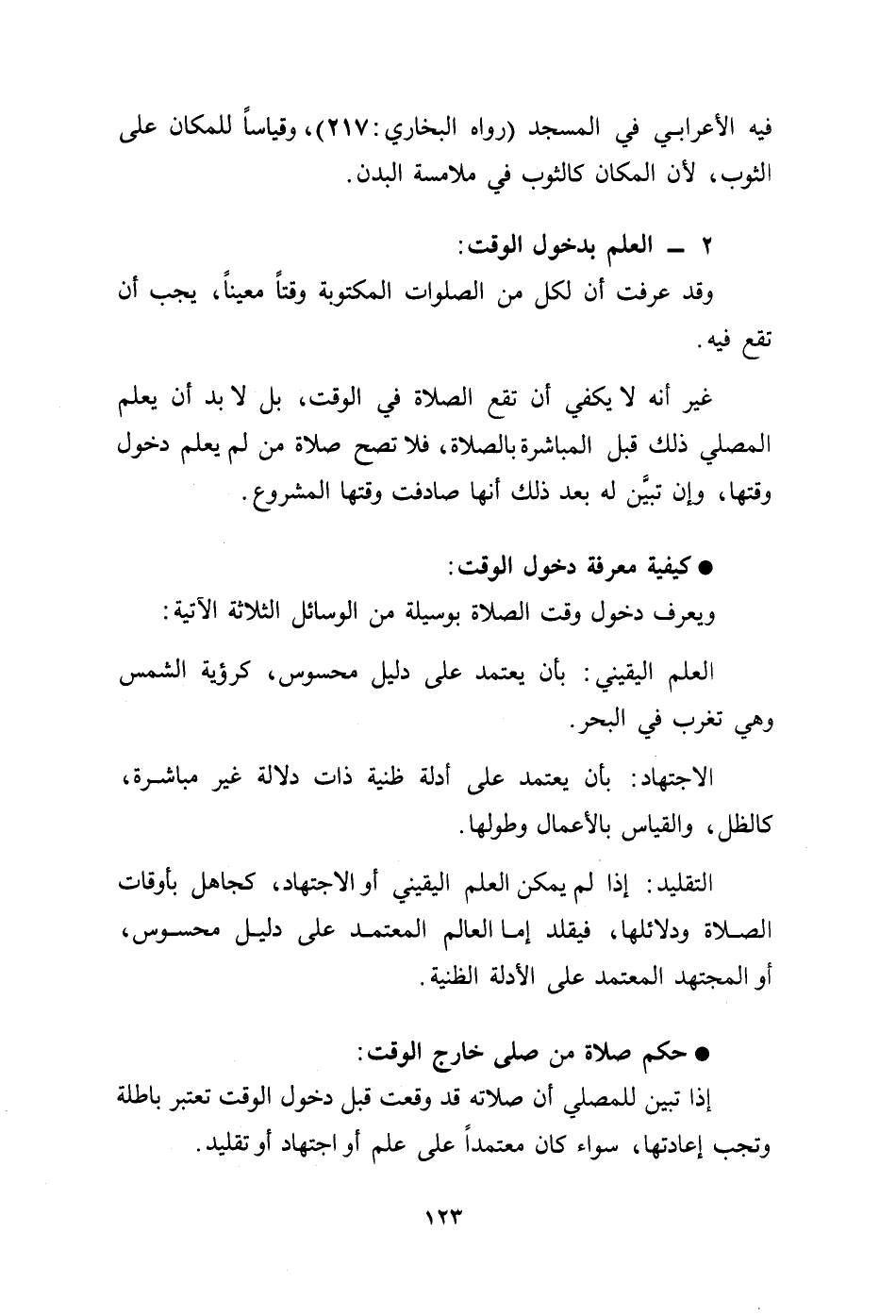 وقد عرفت أن لك من الصلوات المكتوبة وقتاً معيناً، يجب أن تقع فيه ... غير أنه لا يكفي أن تقع الصلاة في الوقت، بل لا بد أن يعلم المصلي ذلك قبل المباشرة بالصلاة، فلا تصح صلاة من لم يعلم دخول وقتها، وإن تبيَّن له بعد ذلك أنها صادفت وقتها المشروع.