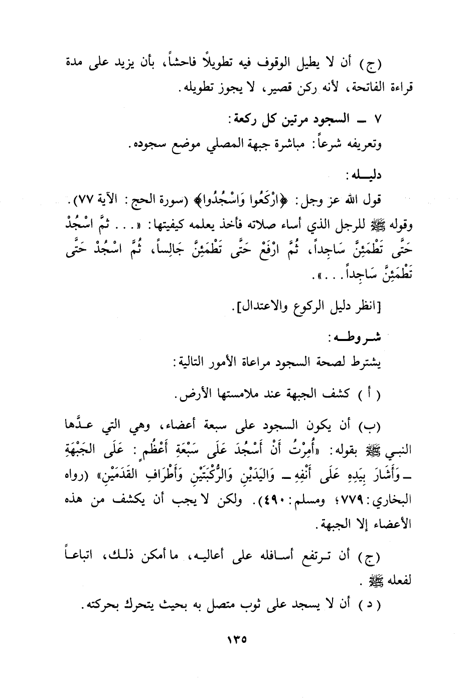 يشترط لصحة السجود مراعاة الأمور التالية: