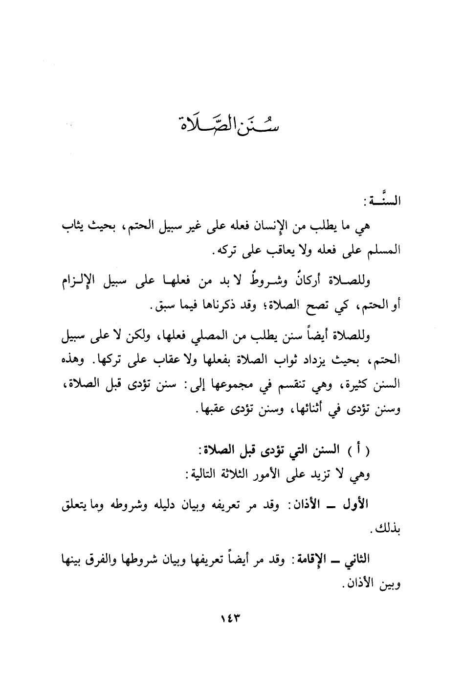 الأول ـ الأذان: قد مر تعريفه وبيان دليله وشروطه وما يتعلق بذلك.
