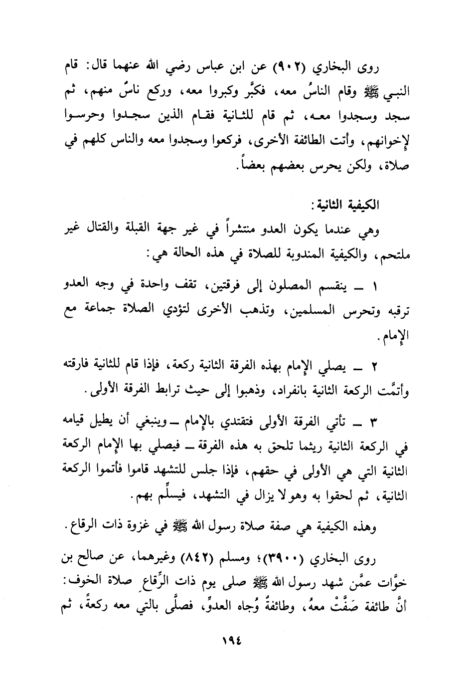 وهذه الكيفية في صفة صلاة رسول الله - صلى الله عليه وسلم - في غزوة ذات الرقاع.
