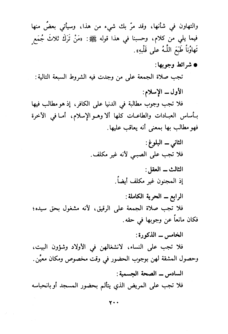 تجب صلاة الجمعة على من وجدت فيه الشروط السبعة التالية: