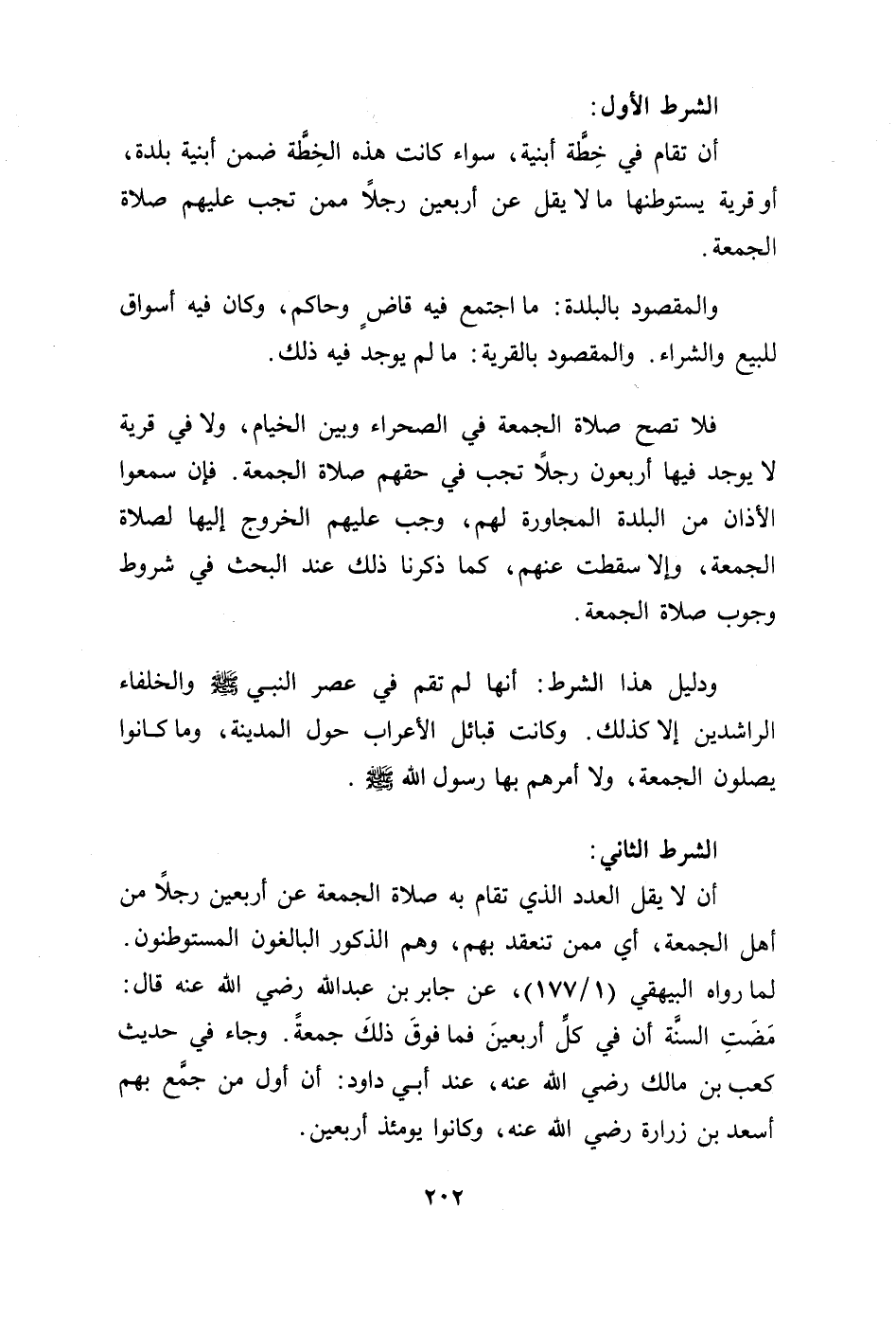 ودليل هذا الشرط: أنها لم تقم في عصر النبي - صلى الله عليه وسلم -.